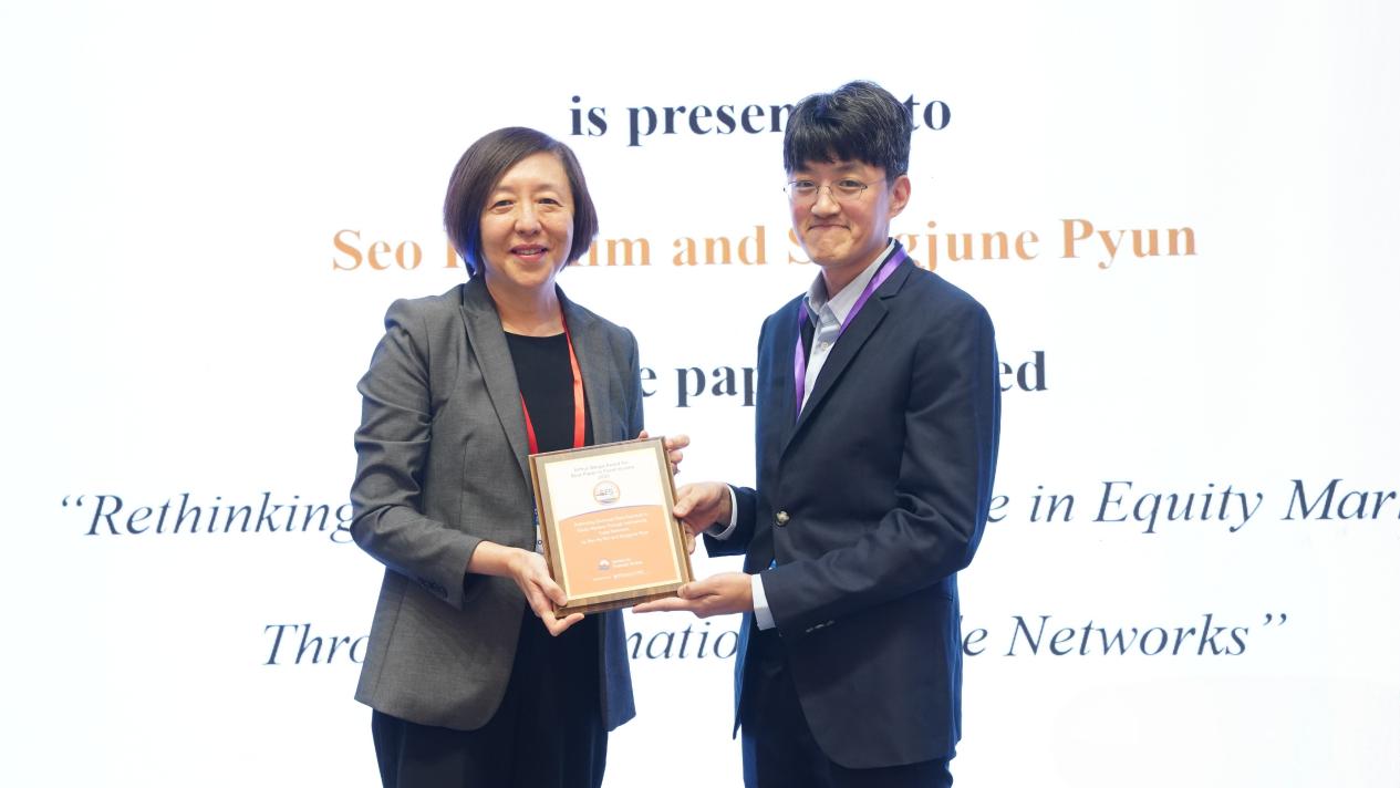 图为于晓筠教授为资产定价最佳论文奖颁奖