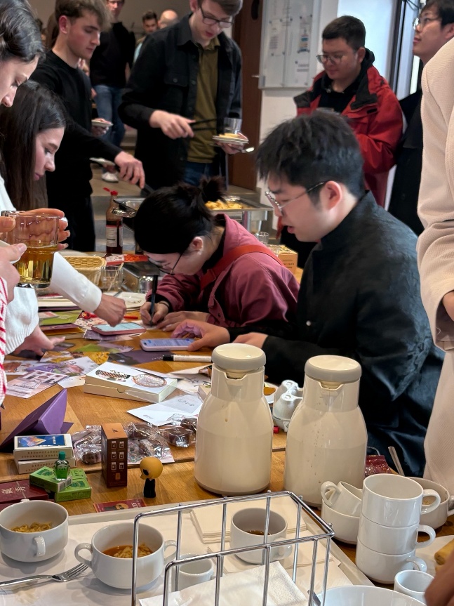 学子精心准备了中国传统美食与文化展示,与来自不同国家的同学分享中华饮食文化与人文内涵。春卷、奶茶、毛笔、贺卡等中国元素吸引了众多国际同学驻足体验,生动展现了文明交流互鉴之美。